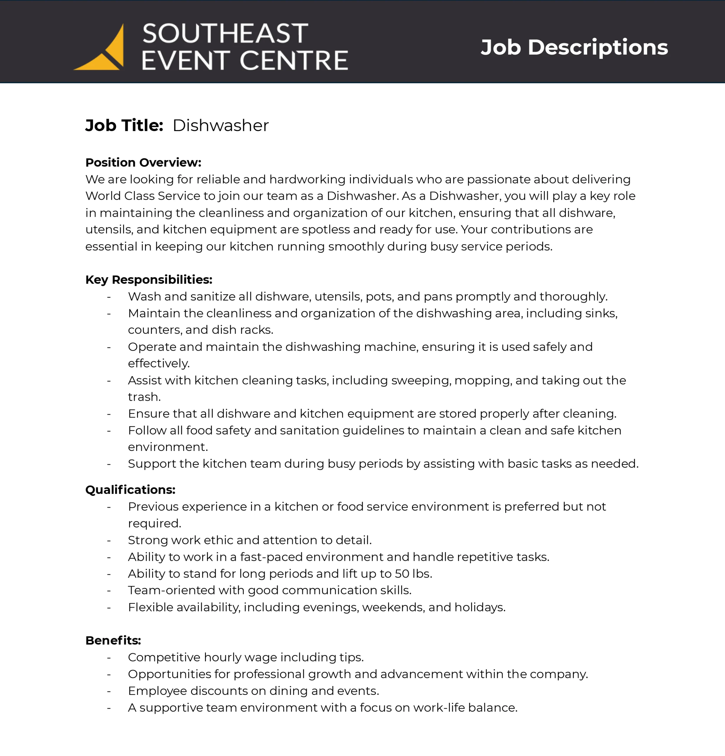 Position for Application Select OneFood and Beverage ManagerSous ChefServer (Restaurant & Banquet)ConcessionsBartenderHost/HostessDishwasherLine CookBanquet CookConcession CookEvent StaffMaintenance StaffGuest ServicesVolunteer CrewController