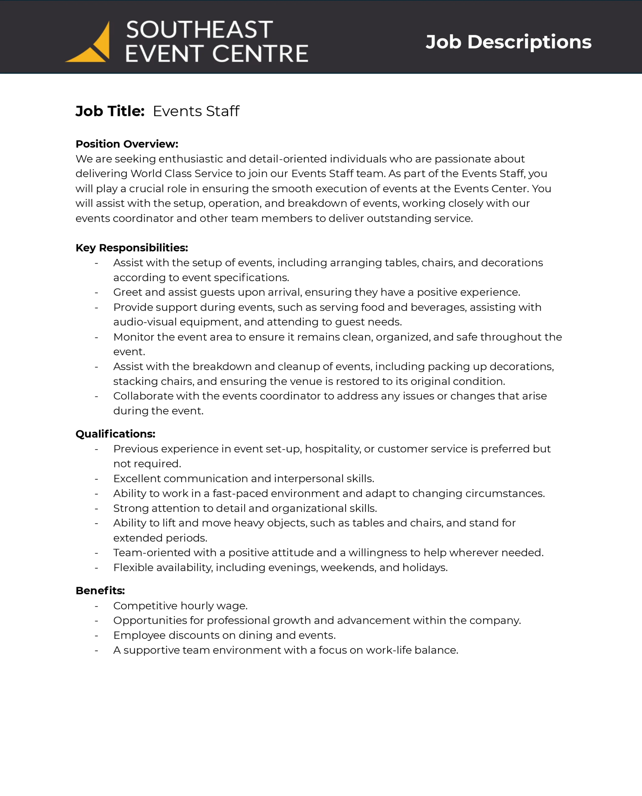 Please describe in your own words, why you should be considered to be part of the Team at The Southeast Event Centre in delivering World Class Service to our Guests & Visitors?