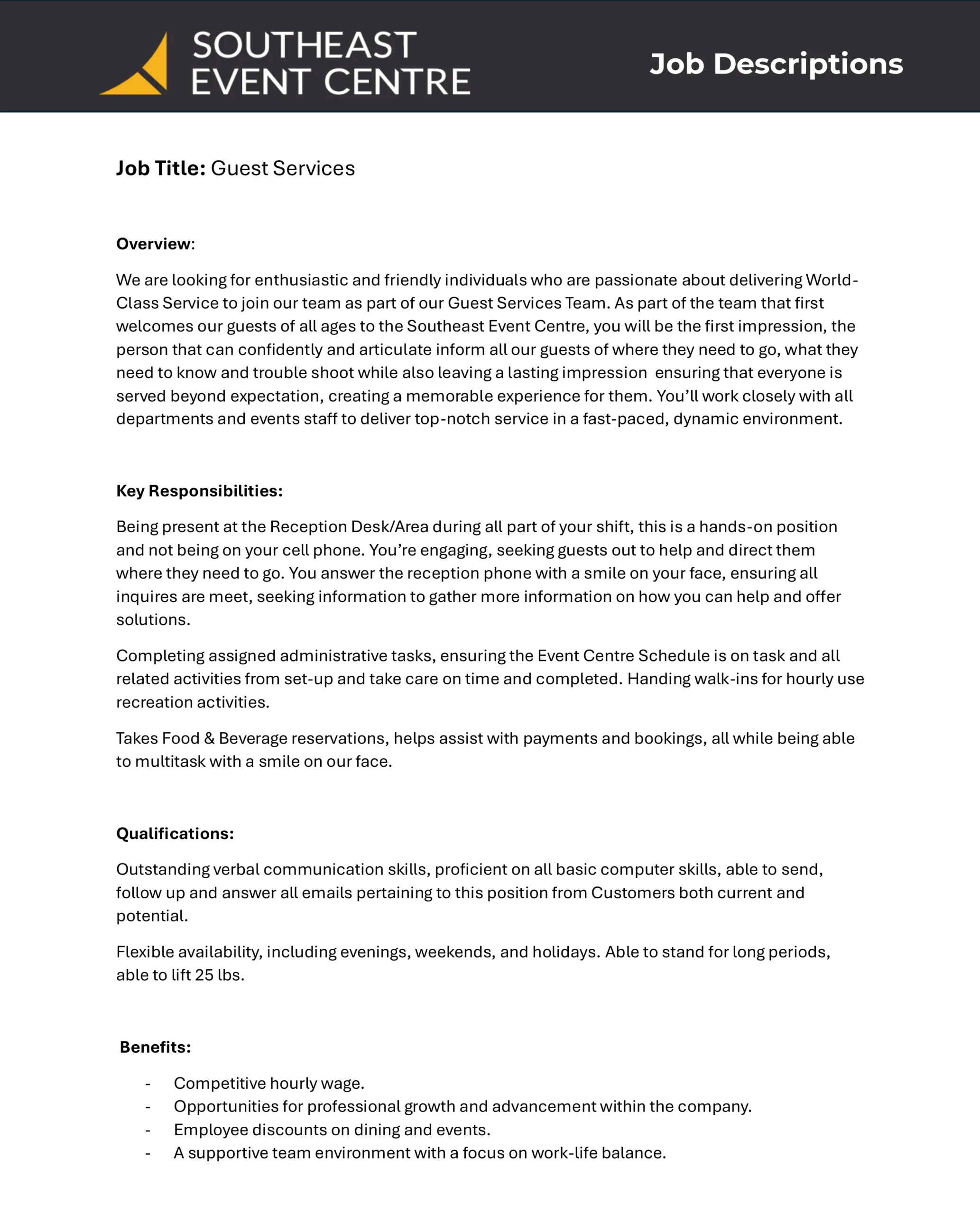 Please describe in your own words, why you should be considered to be part of the Team at The Southeast Event Centre in delivering World Class Service to our Guests & Visitors?