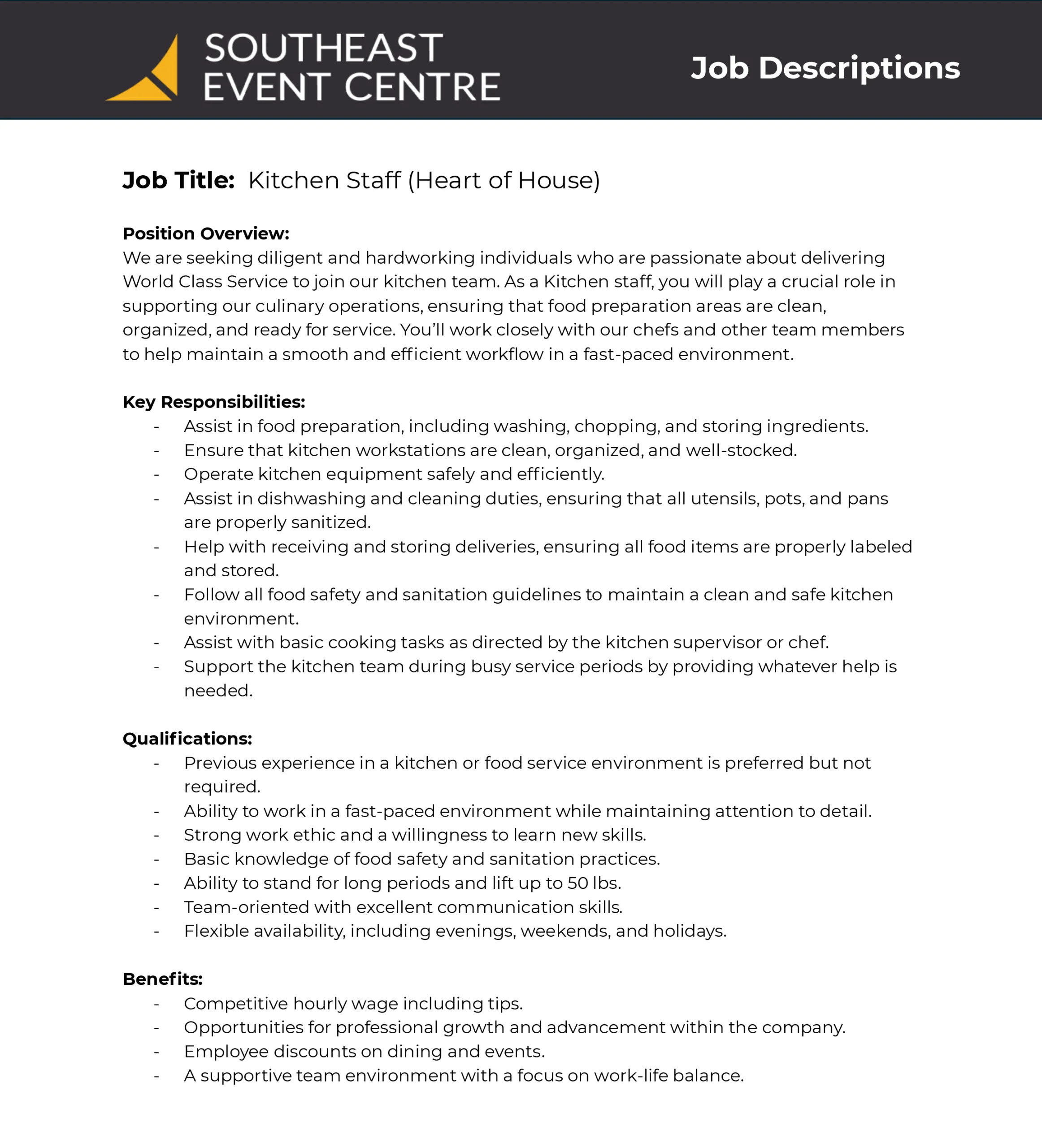Position for Application Select OneFood and Beverage ManagerSous ChefServer (Restaurant & Banquet)ConcessionsBartenderHost/HostessDishwasherLine CookBanquet CookConcession CookEvent StaffMaintenance StaffGuest ServicesVolunteer CrewController